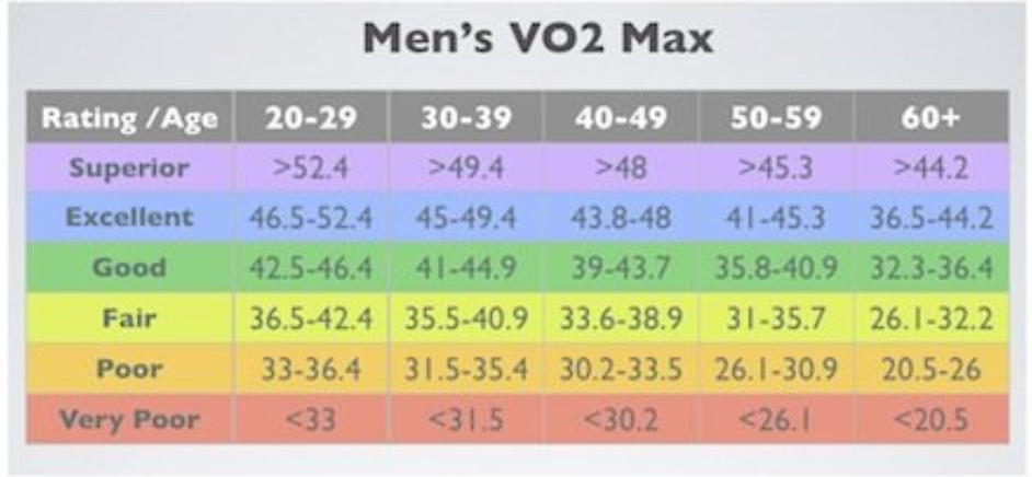 result is an accurate estimate of your V02 Max. Compare your result to the chart below to see how you